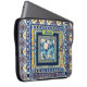 Elegant floral blue tile chinoiserie monogram note laptop sleeve