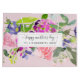 A beautiful watercolor floral design with pink and purple flowers and elegant greenery on a blush pink background.