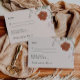 Complete your wedding stationery with our beautifully coordinated response card from the Terracotta Collection. Featuring delicate botanical elements, this RSVP card perfectly complements your invitation suite with its warm, earthy tones. Designed for effortless customisation, it provides ample space for your guests to confirm their attendance and meal preferences, adding a personal touch to your special day.