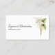 This minimalist elegant business card design features a floral border on the right front with template name and occupation on the left. The back includes text fields for the business name and details. Personalise the text field, remove text or use the edit design tool to select a font style, size, and colour you like.