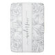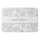 Elegant Floral Botanical White Grey Monogram Bath Mat