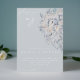 These beautifully elegant wedding invitations are designed with a hand-painted soft watercolor floral bouquet of white lilies, roses and greenery. Customise with the details of your special day for classic memorable invites.