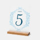 Add a touch of sophistication to your wedding reception with our Elegant Blue Floral Wedding Table Number sign. Featuring a delicate floral wreath and charming bow accents in a serene blue colour palette, this table number is perfect for creating a cohesive and stylish look. Ideal for any elegant wedding theme, this card combines classic charm with modern design, ensuring your guests find their seats in style.