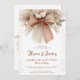 A romantic and elegant wedding card featuring a delicate floral arrangement with soft neutral tones and a large decorative bow. Perfect for couples seeking a modern yet timeless style.