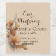 This design features beautiful flowers and simple text. Cheers to love, laughter & happily ever after are printed below. You can customise it by changing the Event and text.