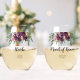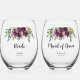 Elegant Floral Bride Maid of Honour Bridal Party Stemless Wine Glass