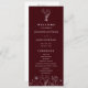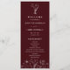 Add a refined and cohesive touch to your ceremony with this Elegant Floral Burgundy Wedding Program. Designed with deep burgundy florals, soft greenery, and elegant typography, this program complements the entire wedding suite. Personalize the order of events, wedding party details, special notes, and messages of gratitude. Printed on premium cardstock, it creates a beautiful keepsake for your guests and sets the tone for a romantic celebration.