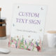 Feminine and modern, this pedestal sign can be customised for your bridal shower. The design features a lovely garden of watercolor pink and purple flowers including roses, tulips, lavender and eucalyptus greenery with bright coloured butterflies and bumble bees flying around.