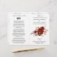 (PLEASE NOTE: The piece of music that the bride and groom exit the church to at the end of the Mass is is called the RECESSIONAL. It is listed as PROCESSIONAL on the sample program. You will want to change that text.) Inside is a prayer for remembering loved ones who have passed and a thank you to all who have attended. These programs coordinate with matching wedding invitations and other wedding essentials in our Elegant Red/Marsala/Pink Floral Wedding Collection.