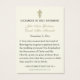 Featuring a beautiful traditional Catholic image of the image of gold wedding rings entwined in a gold cross with a floral bouquet. A prayer is on the back for the bride and groom. All text and fonts can be modified.