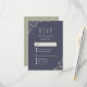 Hand drawn ornate greenery floral design on navy background, sophisticated and elegant, perfect for outdoor garden wedding, country, rustic wedding; or a vintage wedding, winter or summer. Natural colour scheme, sage green, dark navy and pale beige. Custom your own RSVP card for your wedding!