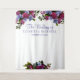 Elegant photo booth custom wedding couple backdrop with beautiful fuchsia pink, and light purple flowers with foliage and leaves. Easy to personalise with your event's title, name, and date.