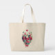Elegant Floral Crest Canvas Tote Bag with Red Hand