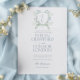 Elegant Floral Crest Dusty Blue Script Wedding Invitation