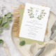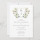 An elegant romantic wedding invitation features a watercolor floral crest with your monogram. Personalise with all the important details such as your names, wedding date, time and venue location. The reverse side is coordinated in green