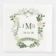 These paper dinner napkins are perfect for your engagement party, shower, rehearsal dinner or wedding. The crest with white watercolor roses on green foliage is stunning. And, your initials, last name and wedding date/party date in 2 shades of coordinating green in a beautiful traditional yet modern font is the icing on the cake.