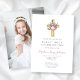 Elegant Floral Cross Girl First Communion Photo Invitation