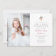 Elegant Floral Cross Girl First Communion Photo Invitation