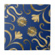 Elegant Floral Damask Navy Blue & Gold Sunflower Tile