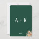 Dark green menu card for formal events and weddings, with watercolor apricot flowers and garden foliage. A simple yet elegant contemporary botanical design inspired by boho vintage style, with monogram on the back.