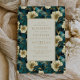 Elegant Floral Dark Teal Cream Gold Wedding Invitation