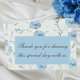 Add a thoughtful touch to your reception tables with this floral blue country garden wedding place card featuring a heartfelt thank you message for guests. Designed with elegant dusty blue watercolor botanicals, it’s perfect for rustic receptions, cottagecore weddings, shabby chic dinners, and spring or summer celebrations. A beautiful way to guide seating while expressing gratitude on your special day.