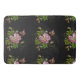 Elegant Floral Embroidery Pattern Black Background Bath Mat