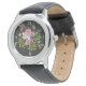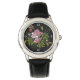 Elegant Floral Embroidery Pattern on Black Backgro Watch