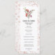 Elegant Floral Eucalyptus Wedding ceremony programs for your special occasion! The design matches with the rest of the Floral Dance Collection. Watercolor floral bouquet of red and purple pansy flowers with dark green leaf foliage frames the top of your wedding ceremony program details. Reverse side lists the members of your wedding party with easily editable text fields. Both sides have a blush pink terracotta pattern border around the program. Use the template fields to add your ceremony and bridal party information, and then click "Customise It" to reposition elements if needed.