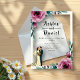 This elegant watercolor floral wedding acrylic invitation is perfect for a modern wedding. The romantic design features a sleek watercolor floral frame with a bride and groom illustration and black calligraphy on a white background.