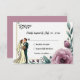 This elegant watercolor floral wedding RSVP Card is perfect for a modern wedding. The romantic design features an elegant watercolor floral frame with a bride and groom illustration and black calligraphy on a white background.