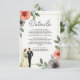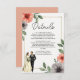 This elegant watercolor floral wedding enclosure card is perfect for a modern wedding. The romantic design features an elegant watercolor floral frame with a bride and groom illustration and black calligraphy on a white background.