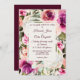 Elements: floral frame featuring botanical elements of roses, peonies and greenery; lively script and chic serif fonts, horizontal orientation. Colours: Fuchsia, hot pink, purple, plum, mulberry, pink, blush, peach, white, off-white, mint green, moss green, sage green and hunter green.. Themes: modern, classic, vintage inspired, elegant, botanical, floral, garden, winery, outdoor wedding, spring, summer, whimsical. Collection: Elegant Floral Frame Pink Blush Purple Peach White. Product Type: Classic Invitation - Vertical