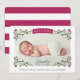 Elegant Floral Frame Plum Baby Girl Photo Birth Announcement