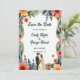 This elegant watercolor floral save the date invitation is perfect for a modern wedding. The romantic design features a sleek watercolor floral frame with a bride and groom illustration and black calligraphy on a white background.