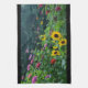 romantic old-fashion garden with daisies, cosmos and sunflowers - lined in the back with white pines.