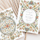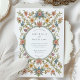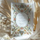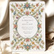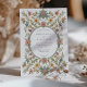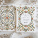 This stunning floral wedding invitation features intricate, hand-painted botanical designs in a refined and elegant style. The front of the card beautifully frames your wedding details with a delicate wreath of blooming flowers in soft hues of blush pink, peach, dusty rose, sage green, muted gold, and pale lavender. The reverse side showcases a mesmerising symmetrical floral pattern that captures the essence of romantic elegance. The pastel colours and finely detailed watercolor artwork evoke a timeless and vintage aesthetic, perfect for couples looking to announce their special day with grace and charm. Ideal for a garden, bohemian, or classic wedding theme, this invitation radiates artistic sophistication.