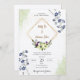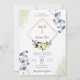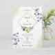 Celebrate your special day with our Elegant Floral Geometric Wedding Invitation. This beautifully designed invitation features a sophisticated blend of delicate blue and green floral elements, perfectly framed within a modern geometric diamond shape. The soft watercolor background adds a touch of elegance, while the gold accents provide a luxurious finish.