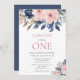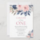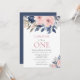 Make your baby girl first birthday celebration unforgettable with this sophisticated invitation. The design features beautiful blush pink and navy peony flowers, making it both stylish and charming. Use the design tools to customise the text, and the font. Also available as digital download for invite.