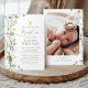Celebrate your little one's sacred day with this elegant Floral Baptism and Christening Photo Invitation. Featuring delicate watercolor wildflowers in soft blush pink, lilac lavender, and golden hues, this design exudes natural beauty and grace. A modern sage green script font highlights the word baptism, adding a stylish yet timeless touch, while the gold cross symbolises faith. Perfect for a girl’s baptism, christening, or baby dedication, this invitation blends minimalist elegance with a botanical spring charm. Easily personalise with your event details and baby photo to create a keepsake-worthy invitation that captures the essence of this special day.