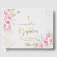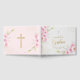 Modern, elegant Baptism Guest Book. Design features floral elements in bright pink colour, gold glitter sprinkles , ''Baptism'' in gold lettering, gold cross and name/date.