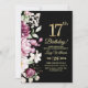 Elegant Floral Gold 17 Birthday Photo Invitation