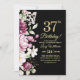 Elegant Floral Gold 37 Birthday Photo Invitation