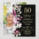 Elegant Floral Gold 50th Wedding Anniversary Photo Invitation