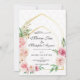 This beautifully designed wedding invitation features a sophisticated gold arch with soft floral accents, blending Islamic geometric patterns with a modern touch. The elegant typography and delicate pastel roses create a romantic and timeless feel, perfect for announcing a special day in style.