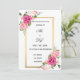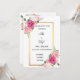 This elegant wedding invitation design features a chic gold rectangular frame adorned with blush pink, ivory, and magenta roses. The minimalist centre layout offers plenty of space for personalised details, while couples can also add a convenient QR code for RSVP or wedding website links. A stylish blend of modern simplicity and floral romance, perfect for weddings, engagements, bridal showers, or anniversary celebrations.