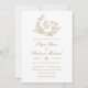 Elegant Floral Gold Monogram Crest Wedding Invitation