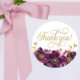 Add a touch of timeless elegance to your event with our Elegant Floral Gold Script Thank You White Sticker. Perfect for sealing favour bags, decorating gratitude gifts, or enhancing your party packaging, this exquisite design features rich purple and deep red floral elements, accented with delicate gold detailing. The luxurious gold script "Thank You" stands out beautifully, enhanced by graceful decorative swirls that evoke sophistication and charm.