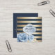 Elegant Floral Gold Stripes on midnight blue Square Business Card