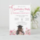Celebrate the graduate's achievement with this elegant and feminine graduation party invitation. Featuring a beautiful illustration of a graduate with flowing brunette hair, a cap and tassel, and a diploma, surrounded by soft pink floral accents and delicate butterflies, this invitation exudes grace and accomplishment. Personalise with all your graduation party details to create a sophisticated and memorable announcement for this special milestone.